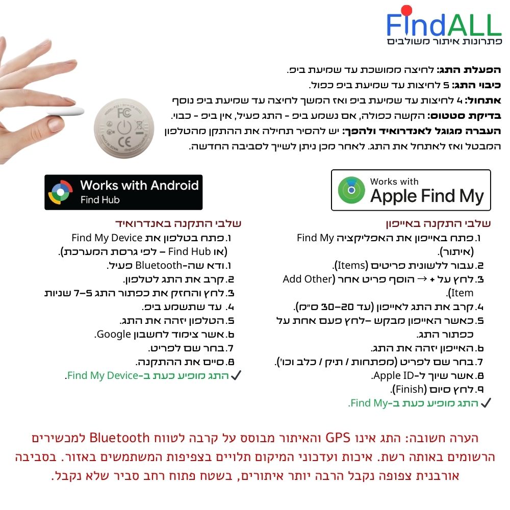 תג איתור דואלי חכם – תומך Apple Find My וגם Google Find My